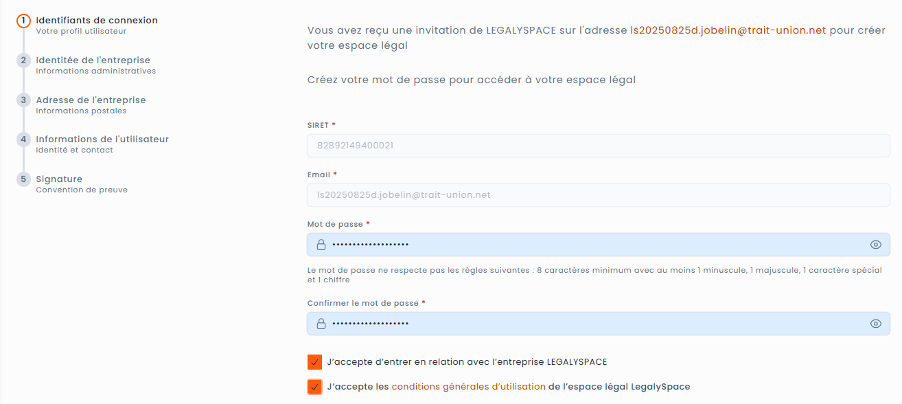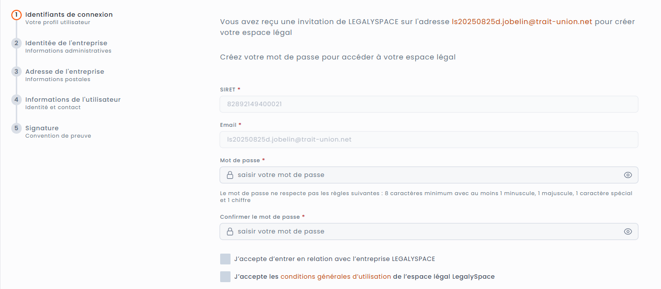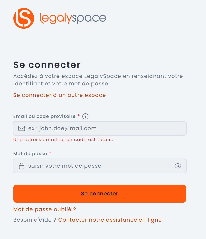 Il n’est pas possible de se créer un compte en autonomie sur LegalySpace.