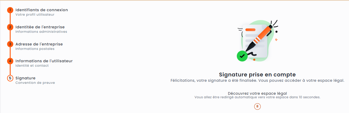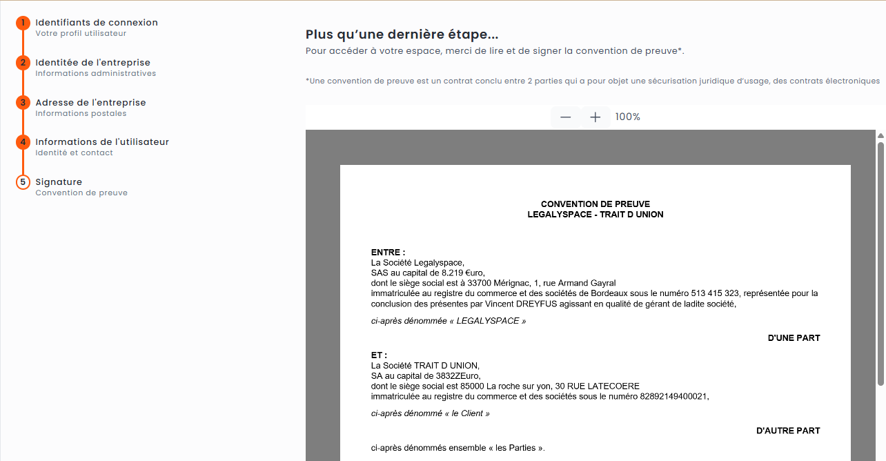 Vous devez maintenant signer numériquement la convention de preuve entre vous et la plateforme LegalySpace.