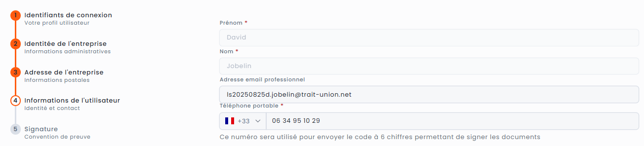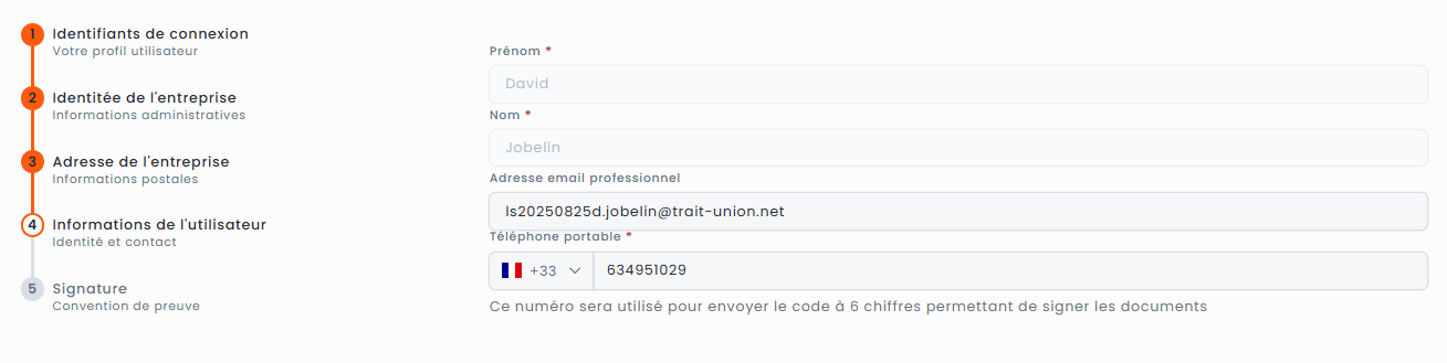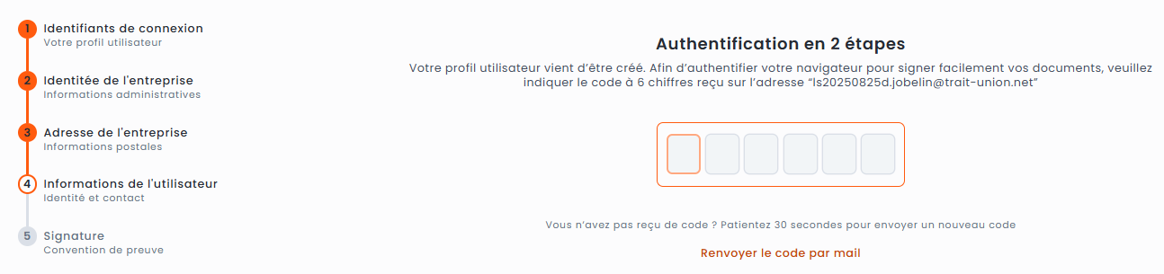 • Saisissez le code de signature reçu par mail afin de signer cette convention de preuve