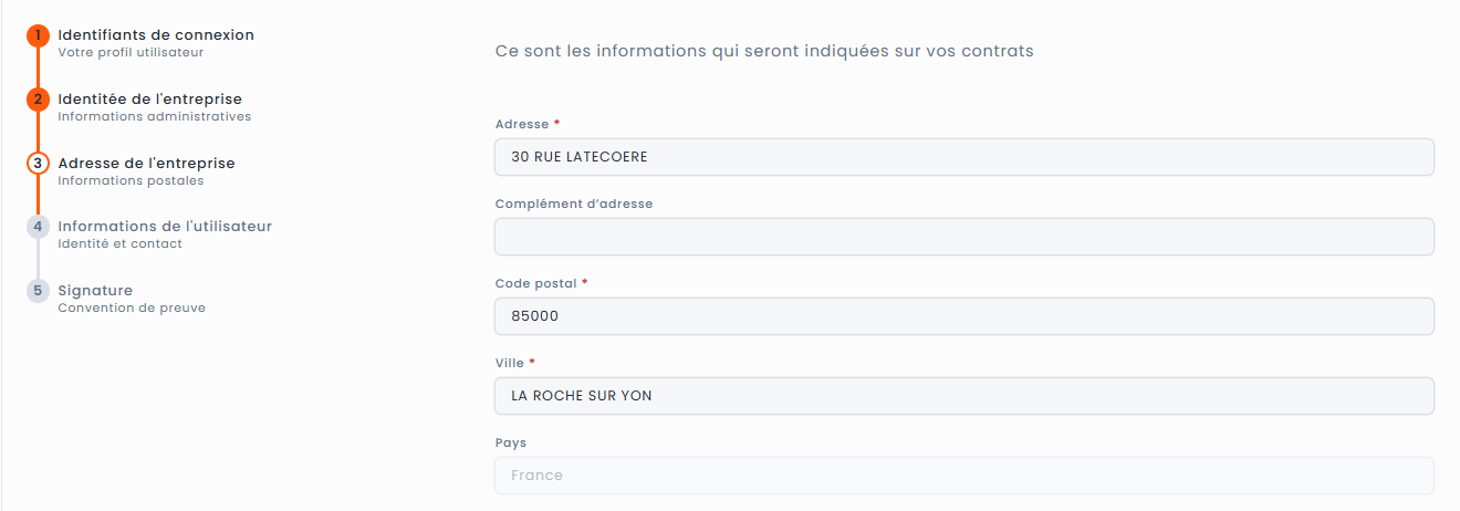 > Vérifier les informations préremplies et complétez les informations manquantes > Cliquez sur le bouton orange "Suivant"