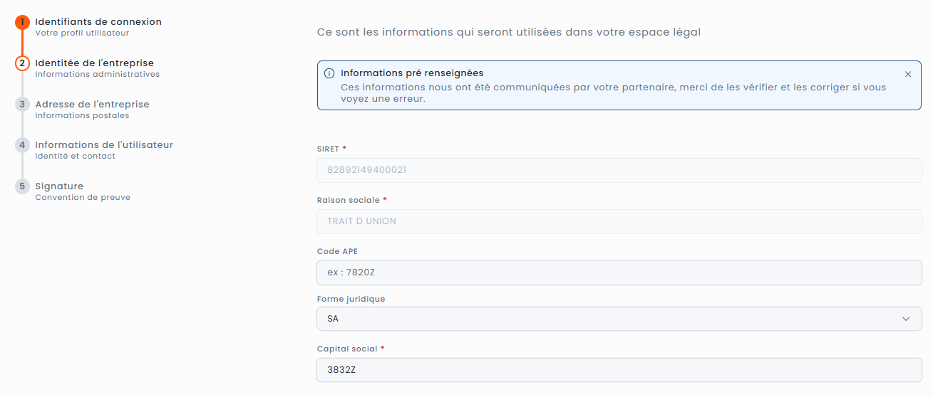Vérifier les informations préremplies et complétez les informations manquantes > Cliquez sur le bouton orange "Suivant"