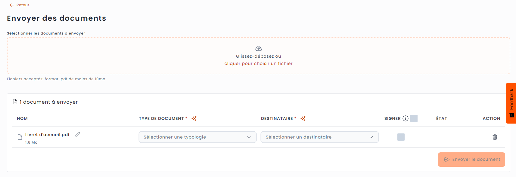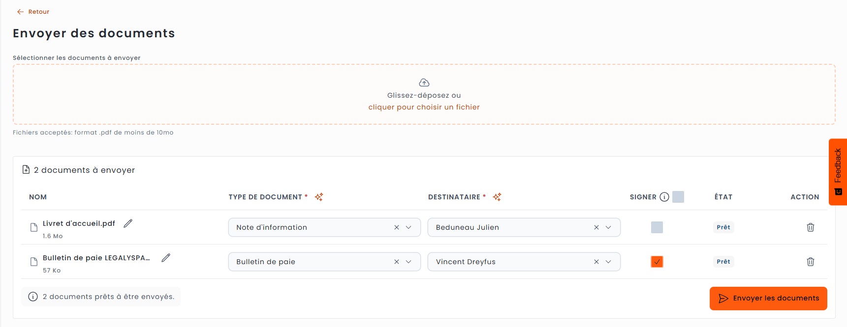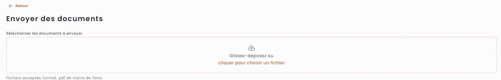 > Cliquez sur le bouton orange "Envoyer les documents"