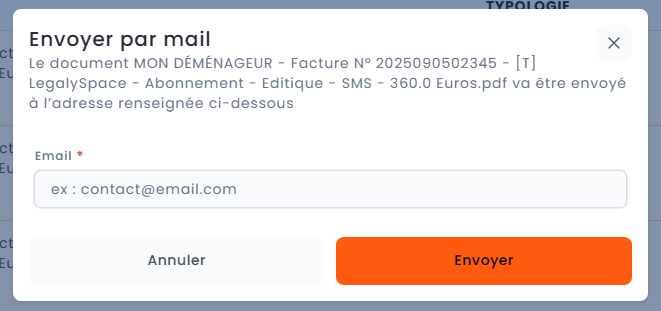 "Envoyer par mail" > Cliquer sur le bouton orange "Envoyer"