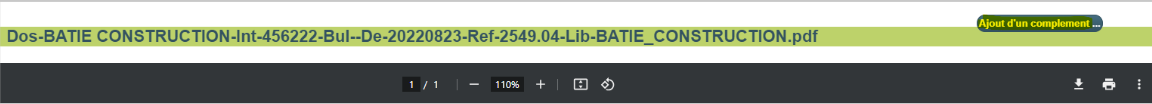 Rajouter des pièces jointes à vos documents avant de les transmettre en cliquant sur le bouton "Ajouter un complément". Par exemple, les relevés d’heures avec les factures.