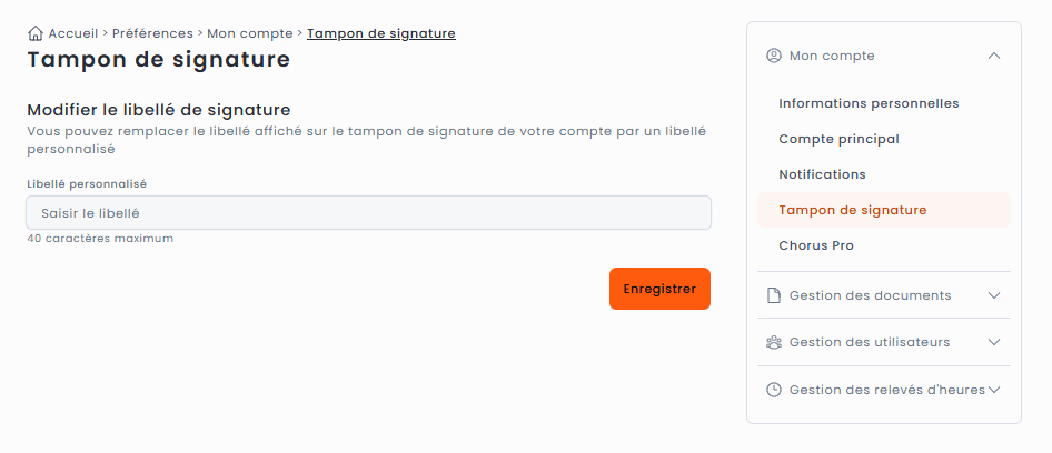 C'est dans cette rubrique que vous avez la possibilité de modifier votre tampon de signature.