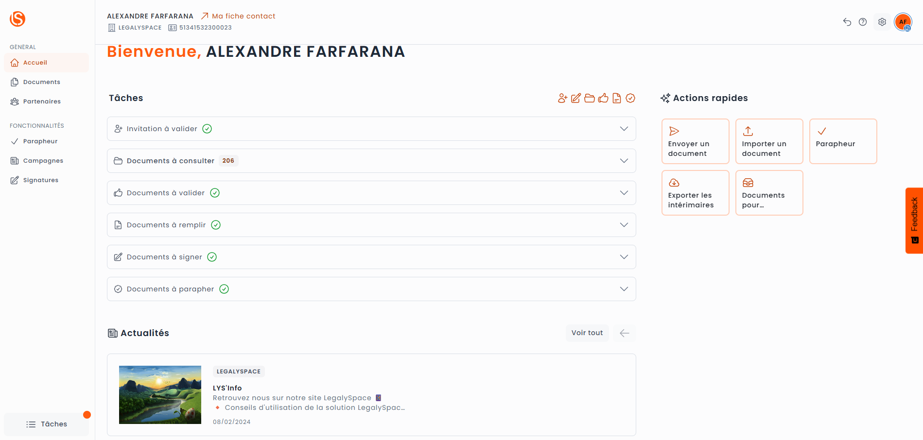 Si vous bénéficiez d'un Pack Siège / Multisites, un espace dit "principal" gère l’ensemble des espaces dits "secondaires" via un accès centralisé avec la possibilité de signer les documents au nom de vos filiales et l’envoi de campagnes d’information communes.
