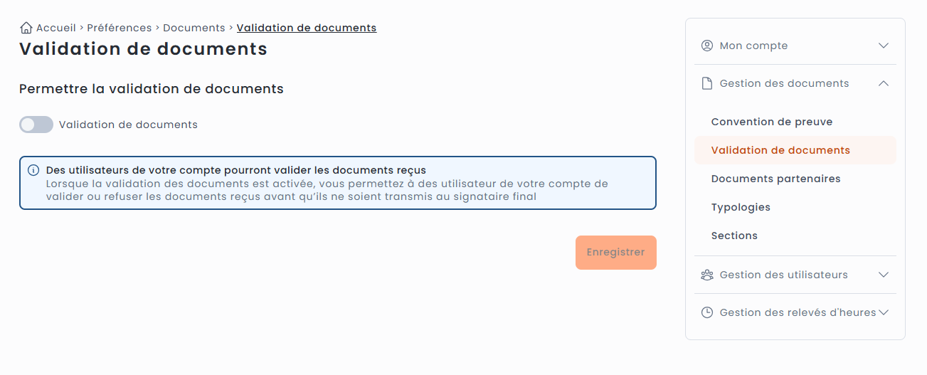 À réception d'un document, un utilisateur validateur indique à un utilisateur signataire la conformité ou non du document.