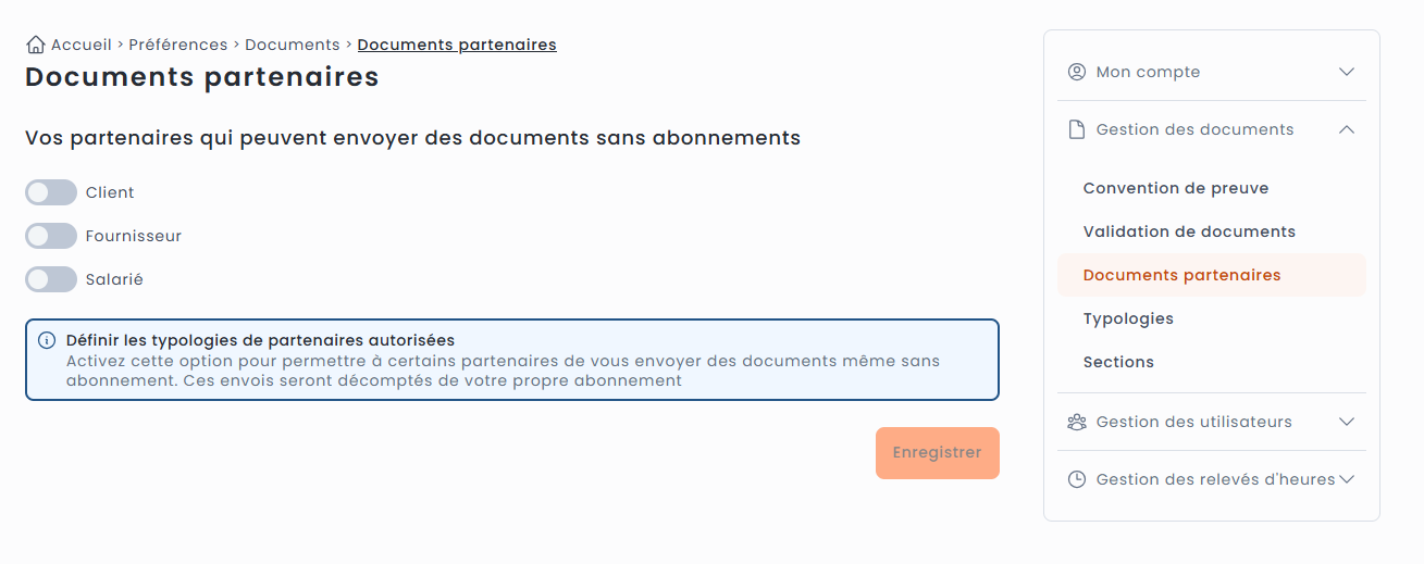 Donner la possibilité à vos partenaires de vous envoyer des documents qui seront décomptés de votre abonnement (Salariés / Clients / Fournisseurs).