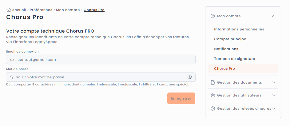 Il est possible de transférer les factures vers Chorus Pro directement à partir d’un EL LegalySpace.