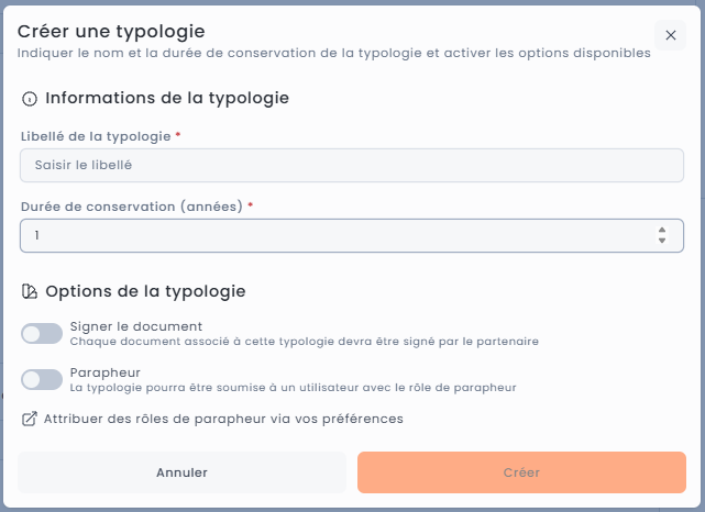 Vous avez également la possibilité de créer une typologie personnalisée pour vos documents importés.