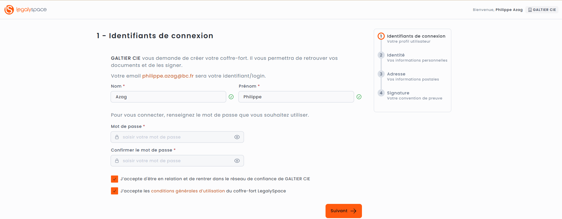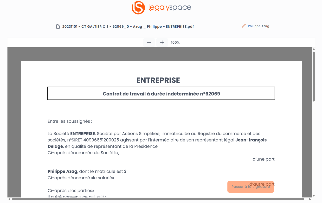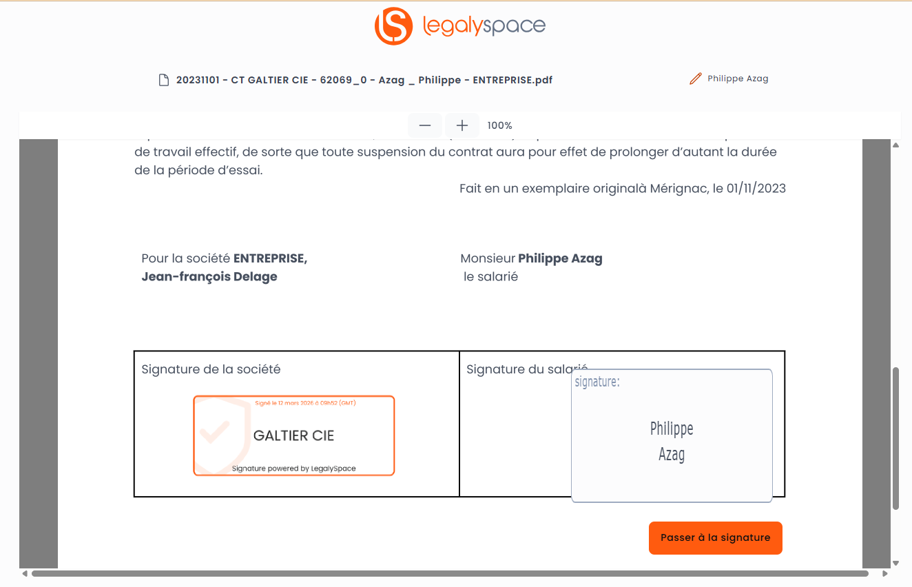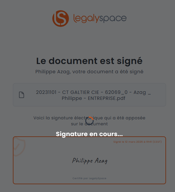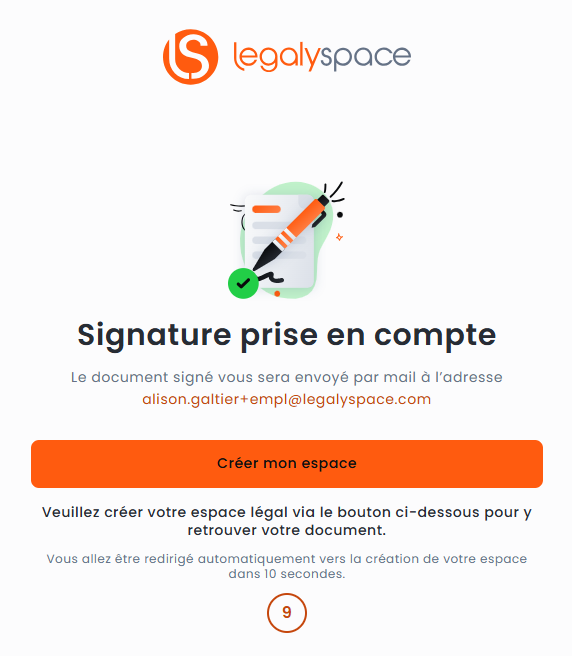 Il est possible qu'a la fin de la procédure de signature apparaisse une proposition d'ouverture d'un espace LegalySpace.