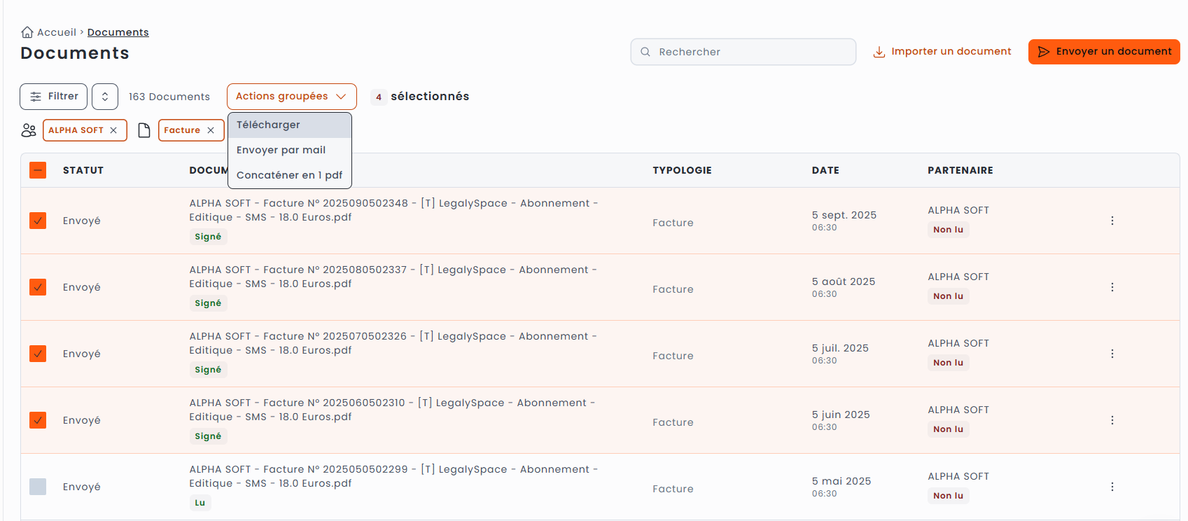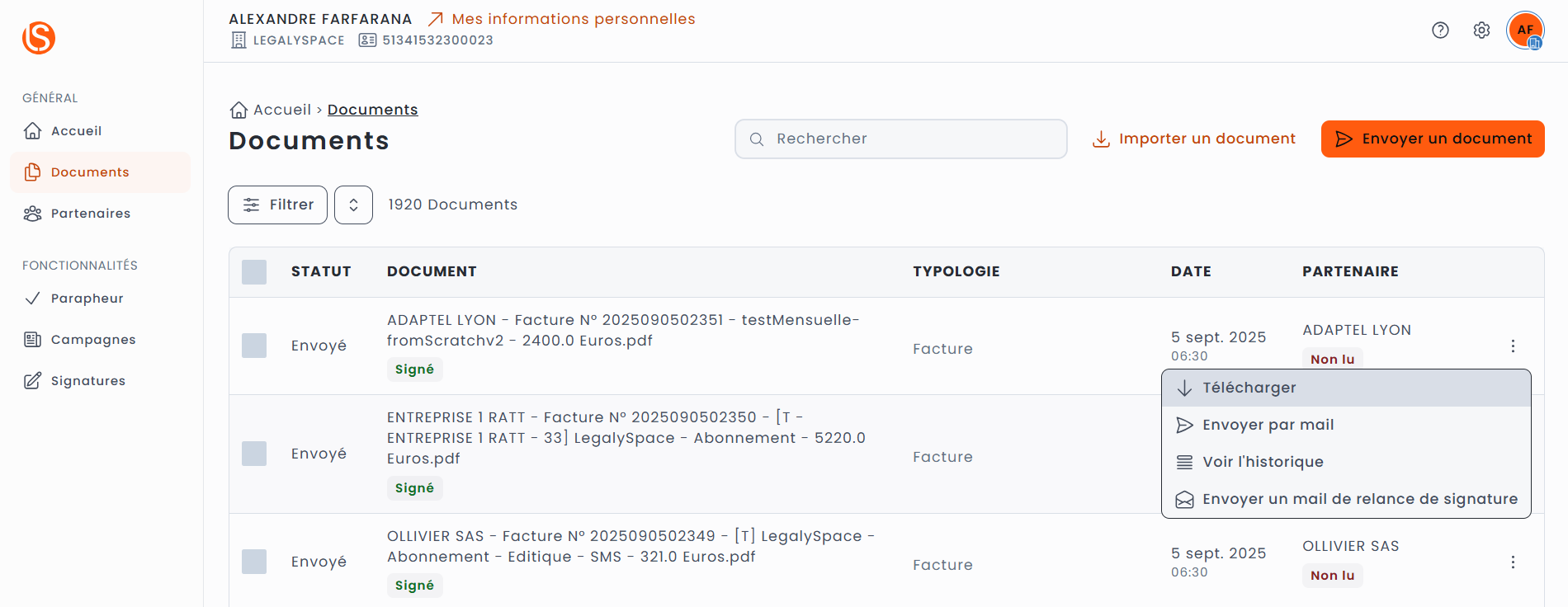 ENVOYER un/des document(s) déjà présents ou non dans votre espace légal vers un EL ATTENTION, pour les documents envoyés manuellement depuis la Plateforme : - ils doivent être en format PDF, sans signature numérique et non verrouillés par un mot de ...